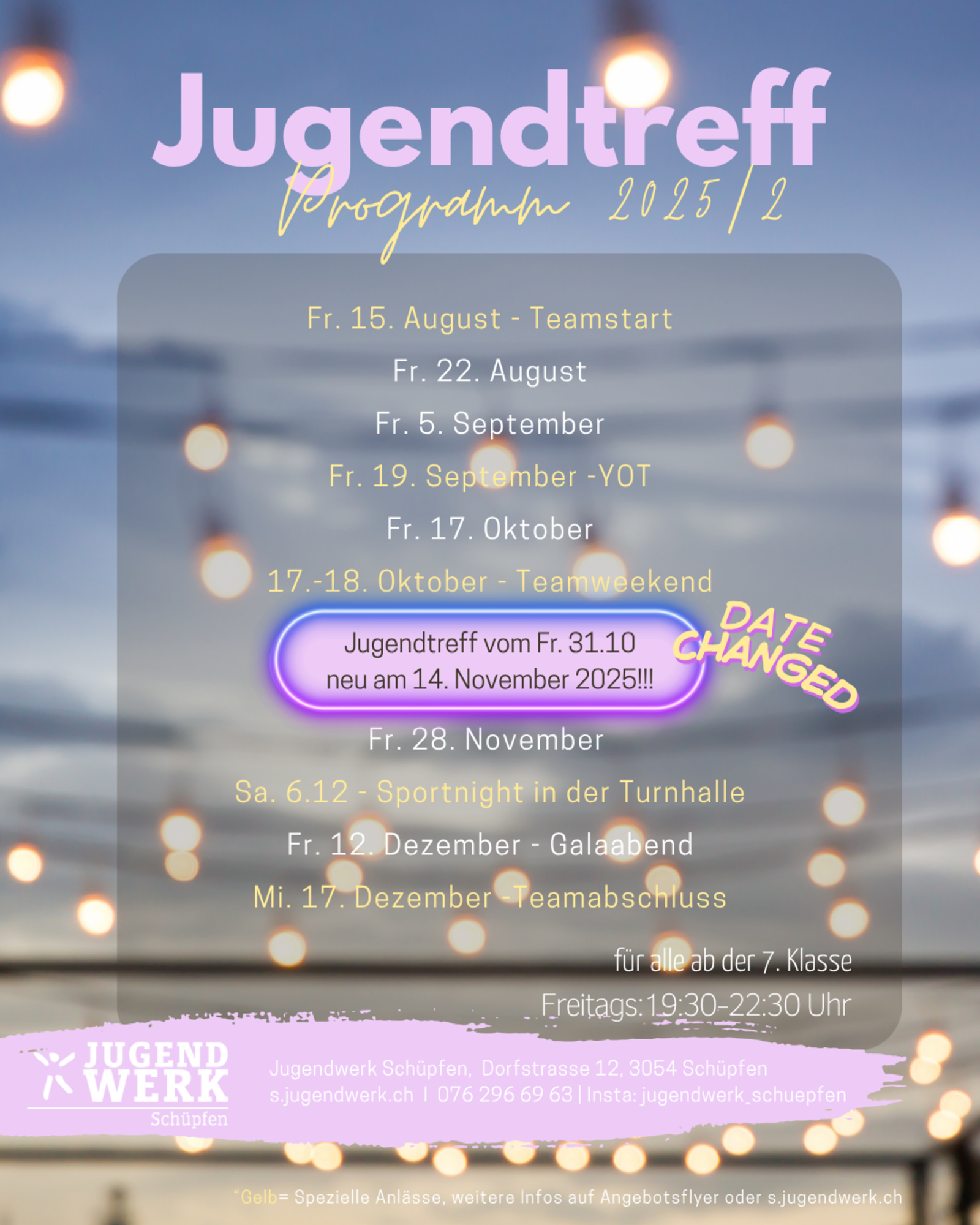 Der Jugendtreff vom 31.10.25 findet nicht statt. Der neue Termin ist der 14.11.2025.